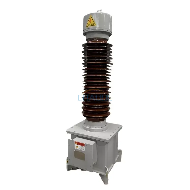 Transformatorul de tensiune electromagnetic cu scufundare în ulei dezvoltat independent de Anqiang, model seria JDX, este potrivit pentru niveluri de tensiune de 66KV, 110KV și 220KV. Transformatorul are trei înfășurări secundare în partea superioară, cu înfășurări separate de măsurare și protecție. Este echipat cu un rezervor de expansiune metalic din oțel inoxidabil în partea de sus, care include un vizor pentru nivelul de ulei pentru monitorizarea ușoară a schimbărilor nivelului de ulei. Partea inferioară a transformatorului de tensiune electromagnetică cu scufundare în ulei este prevăzută cu o supapă de evacuare a uleiului multifuncțională, ceea ce face ca prelevarea, scurgerea și reumplerea uleiului să fie mai convenabile. Baza și alte părți din oțel expuse ale produsului utilizează atât procese anticorozive de acoperire cu pulbere, cât și galvanizare la cald, asigurând atât estetica, cât și o rezistență excelentă la coroziune. Acest transformator de tensiune are o structură de izolație cu o singură treaptă, iar cablurile sunt compuse din mai multe ecrane capacitive pentru a asigura un câmp electric uniform.